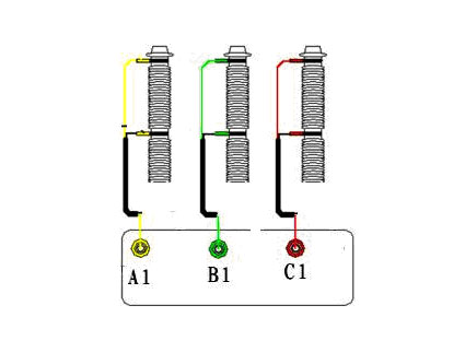 ◆ A1接黃黑線、B1接綠黑線、C1接紅黑線,夾子上的粗線為電流線、細(xì)線為電壓線。